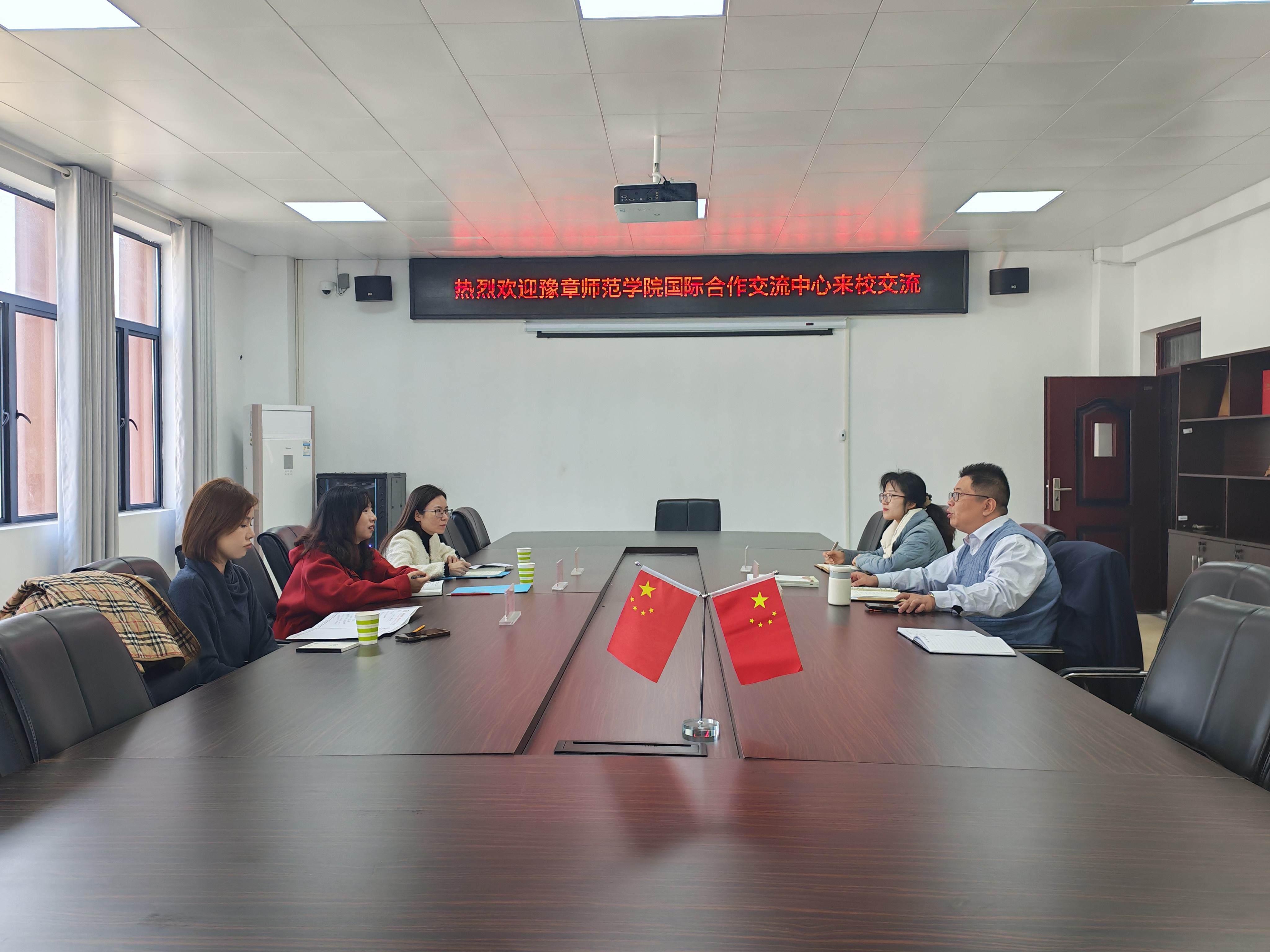 2025年12月11日上午,豫章师范学院国际交流与合作中心副主任张欣、国际交流科科长周琦、综合科副科长高昂一行三人来我校交流访问中外合作办学项目、留学生管理等工作方面的相关情况。我校国际合作与交流处处长赵阳、合作交流科副科长姜璇、国际教育学院辅导员谢春民参加交流座谈。