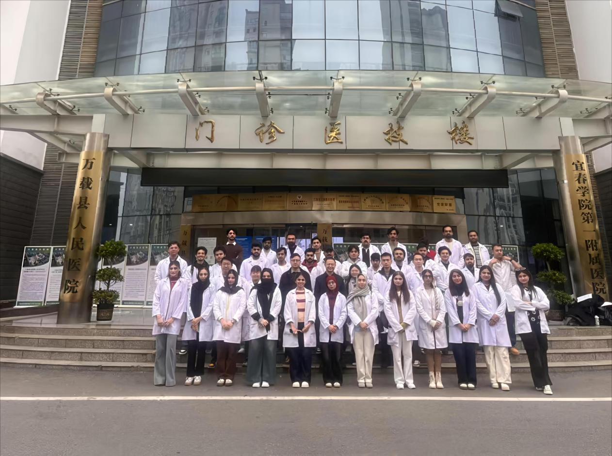 为深化临床医学专业留学生的实践教学,提升其临床思维与技能,国际教育学院近日组织2021级临床医学专业48名留学生,先后赴宜春学院第一附属医院、第二附属医院开展了医院见习活动。本次见习安排周密、内容充实,取得了预期圆满成功。