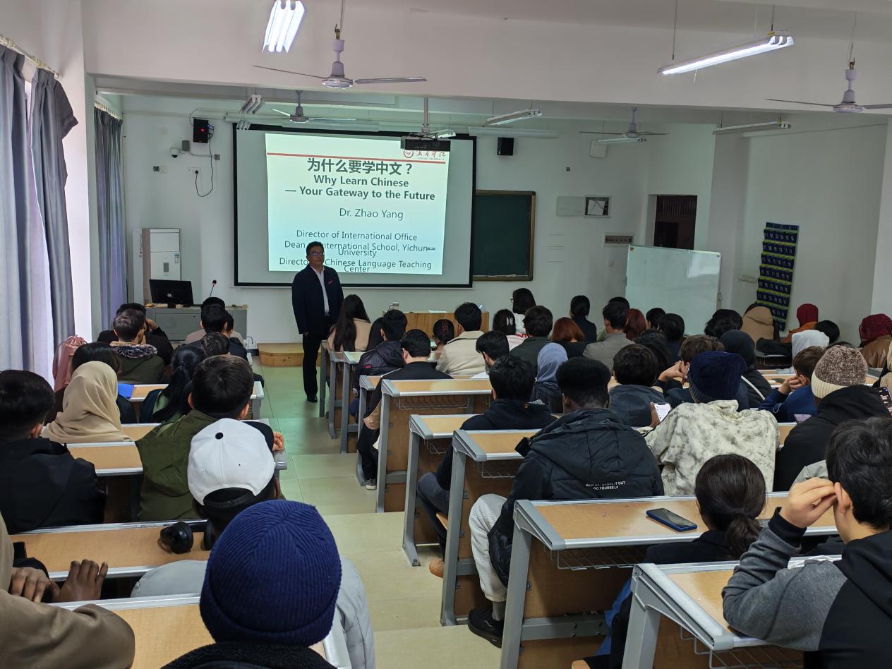 赵阳院长特别强调了中文学习的重要意义。他指出,对于所有来华留学生而言,中文不仅是一门语言,更是深入了解中国社会、文化和日常生活的关键工具。“无论是临床医学专业的学生,还是语言交换生,掌握中文都能帮助你们更好地与患者沟通、理解中国医疗体系,或是更顺畅地融入这里的学术与社交环境,”