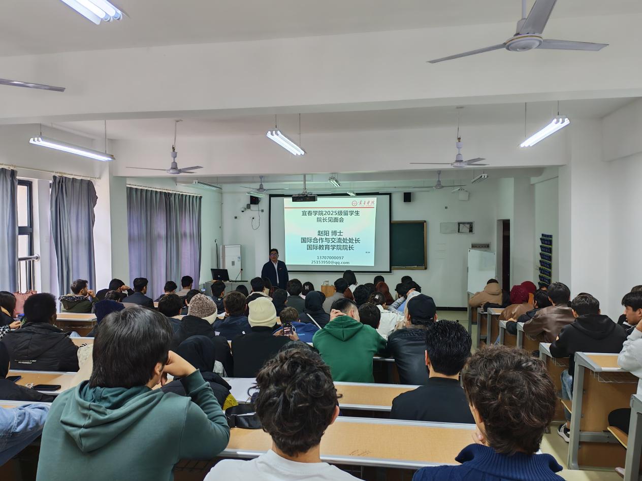 见面会在轻松融洽的氛围中开始。赵阳院长首先代表学院向全体新生表示热烈欢迎。他在致辞中介绍了学校的历史沿革、办学特色以及国际教育学院在留学生培养方面取得的成果,并寄语新生:“希望同学们尽快适应新的学习和生活环境,珍惜留学时光,不仅成为专业知识的追求者,更成为中外文化交流的桥梁和友谊的使者。”